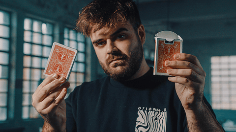 Without any suspicious moves and with the magician still, the deck cuts itself in half, projecting the signed card out!