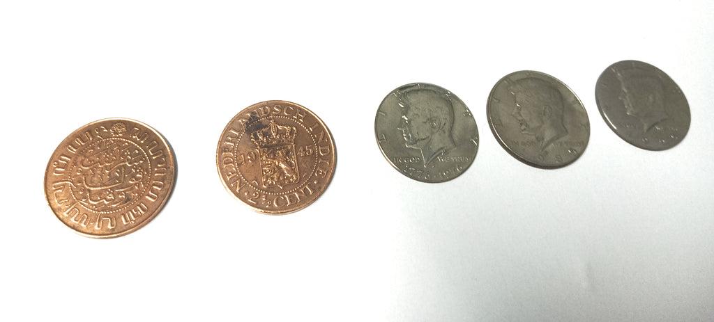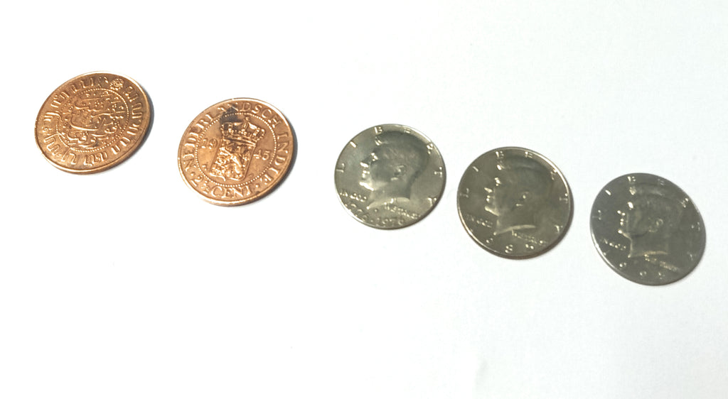 High quality set made it with real coin. Comes with 3 shells, 1 double side coin, 1 regular coin.