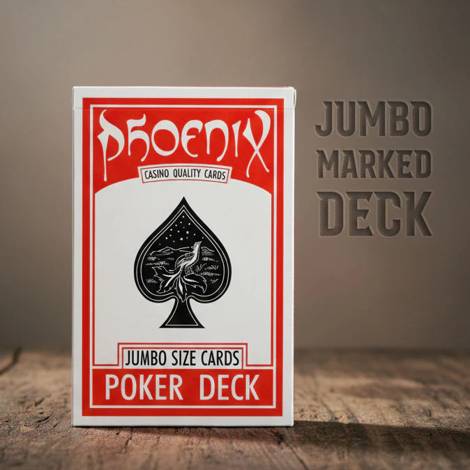 Can the world’s best Marked Deck be improved upon? YES, once again! After producing our successful Marked Deck in Poker Format in both Classic Index and in the larger Phoenix Index, and also manufacturing it in Parlour Format for the parlour stage, the time has now come: the Marked Deck in JUMBO stage format!